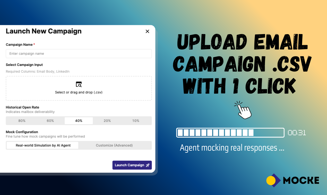 Product Hunt 日榜 | 2025-08-22 | Mocke AI智能体模拟执行邮件营销活动,1分钟内即可反馈结果,包括邮件打开率、回复率和退订率等关键指标。更独特的是,Mocke能深度解析潜在客户行为:精准指出未打开邮件的原因,解析被标记垃圾邮件或遭到忽视的深层因素。助您获取真实场景中无法捕捉的营销成败关键洞察,揭示活动成功或失败的本质原因。